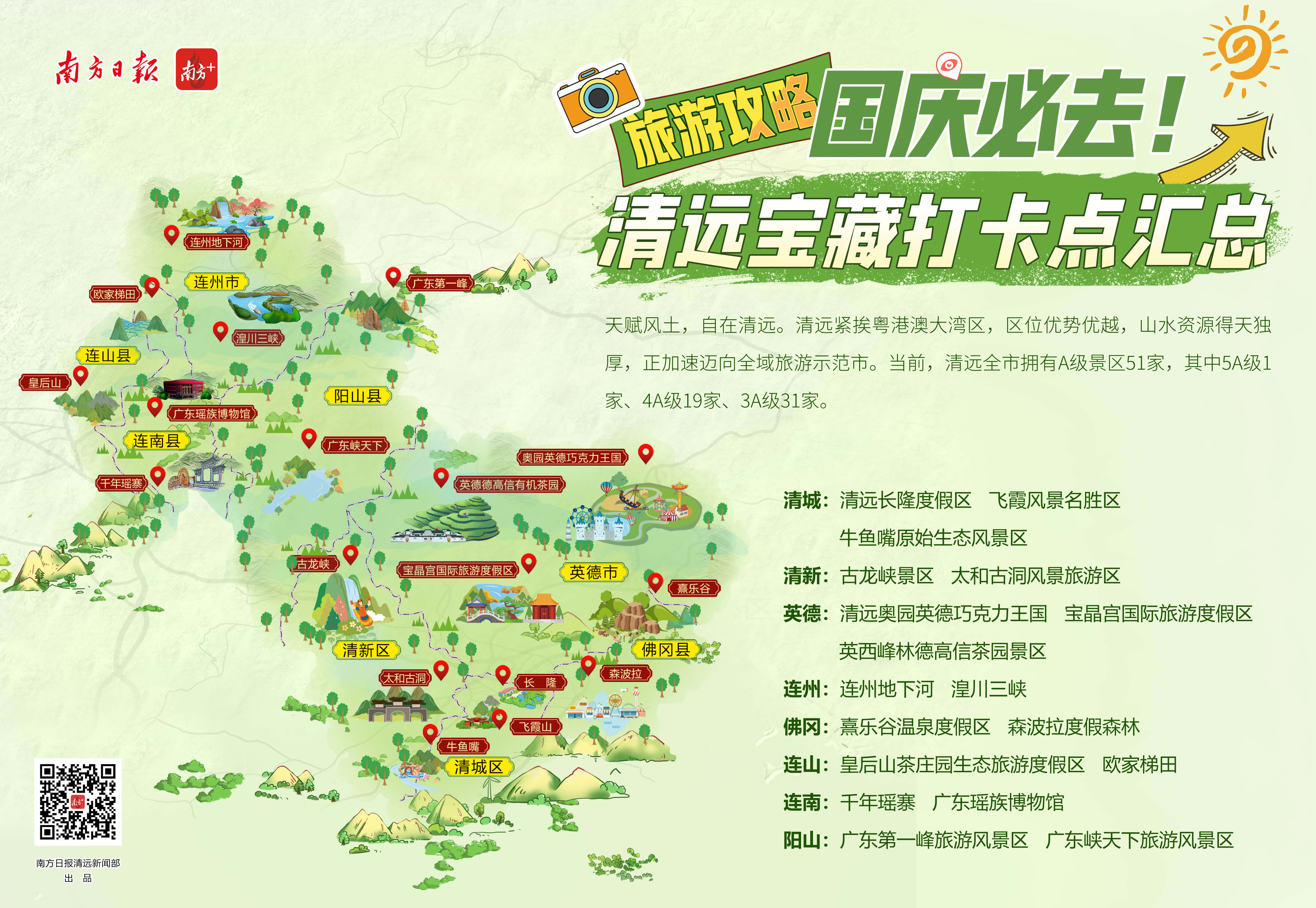 清远在智慧文旅平台推出《清远文旅一张图》数字票根优惠活动,有效串联清远长隆、古龙峡等龙头文旅企业与“吃、住、行、游、购、娱”全链条消费生态;南方日报清远新闻部在假日前夕推出《清远国庆出行地图》,为游客提供“良心推介”。