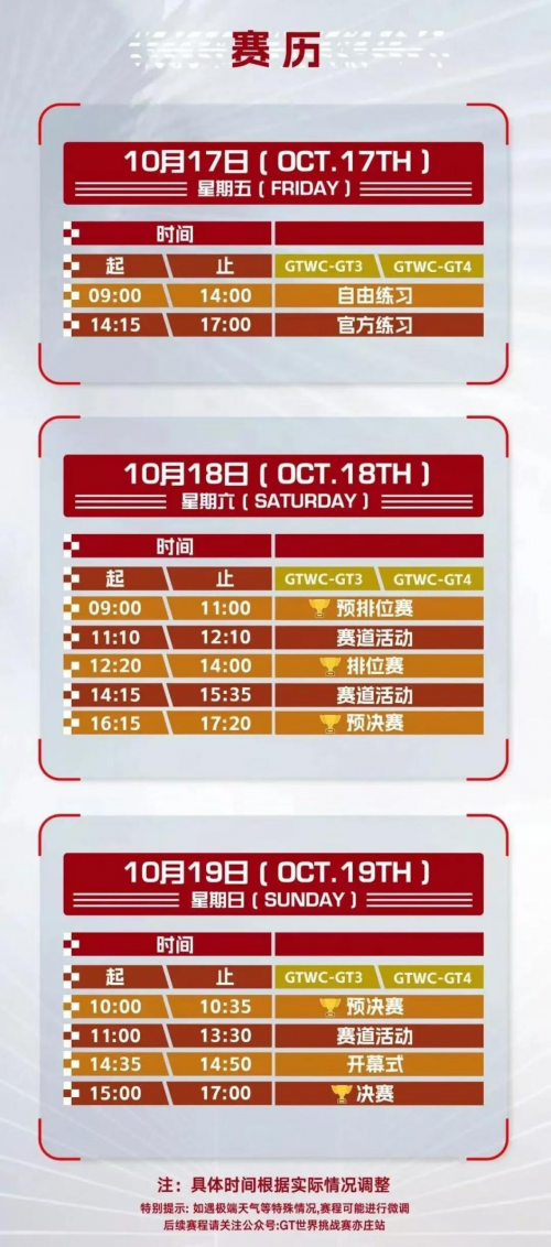 错过早鸟票的朋友也不必灰心,正价票即将于17号开启发售,届时,ABCDEF六个区域门票将全面开售。请持续关注GT世界挑战赛北京亦庄站官微,第一时间获取信息!