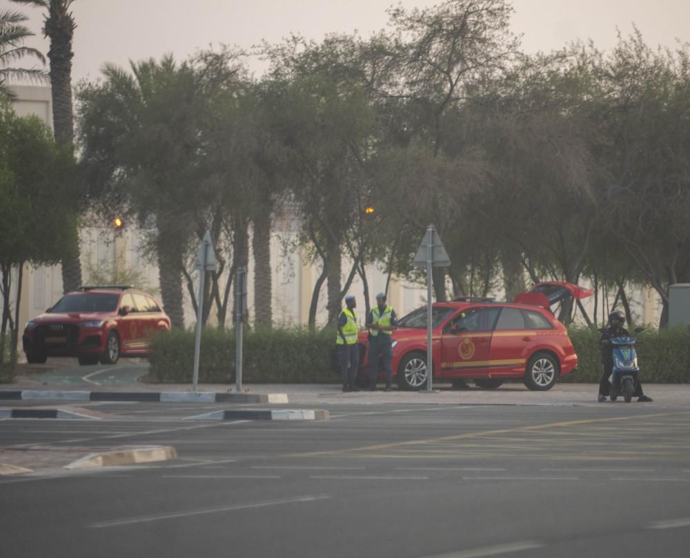 9月9日,在卡塔尔首都多哈,安全人员在事发现场附近执勤。新华社发(尼库摄)